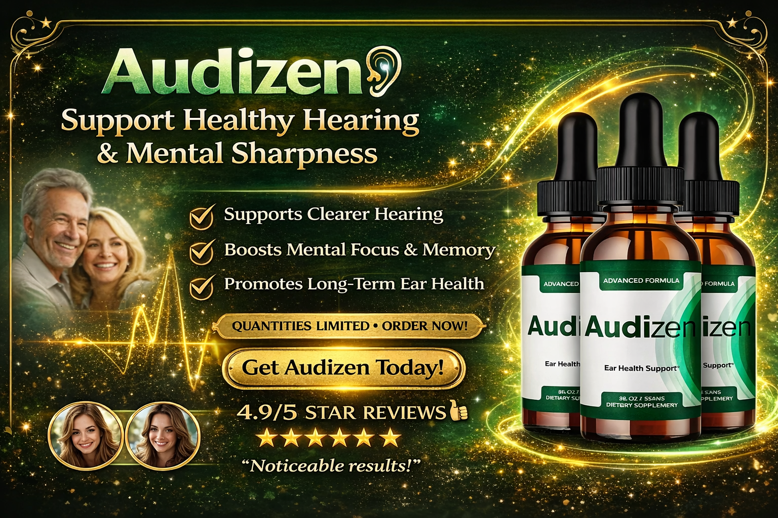 Audizen is a dietary supplement designed to support hearing health and mental sharpness.