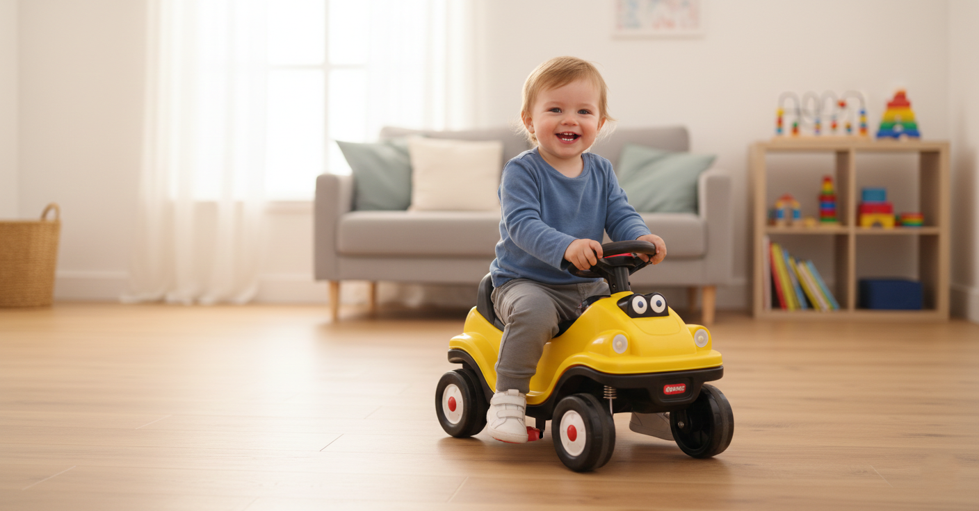 Early learning does not always require flashcards or structured lessons. Sometimes it begins with four wheels and a determined toddler.