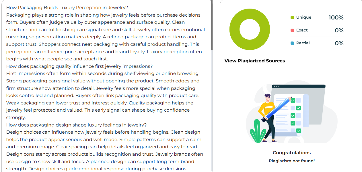 Luxury perception in jewelry relies heavily on careful packaging decisions. Presentation can shape trust before product inspection begins. Design, material, and structure all contribute to perceived value. Buyers often judge quality through visual and physical cues. Packaging also supports protection and gifting appeal. Cost planning must align with product positioning goals. Strong packaging can support long term brand trust. Jewelry brands benefit when packaging reflects care and intention consistently.